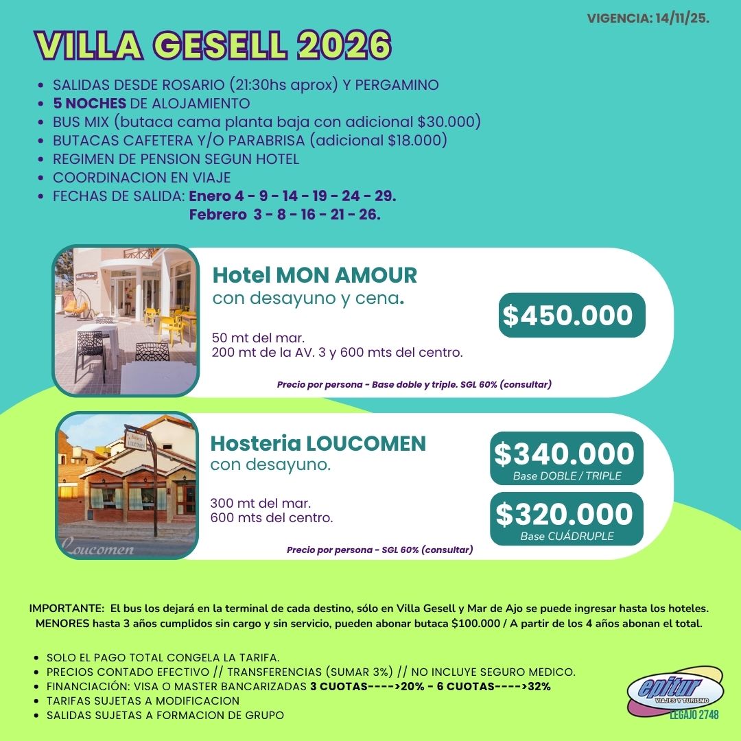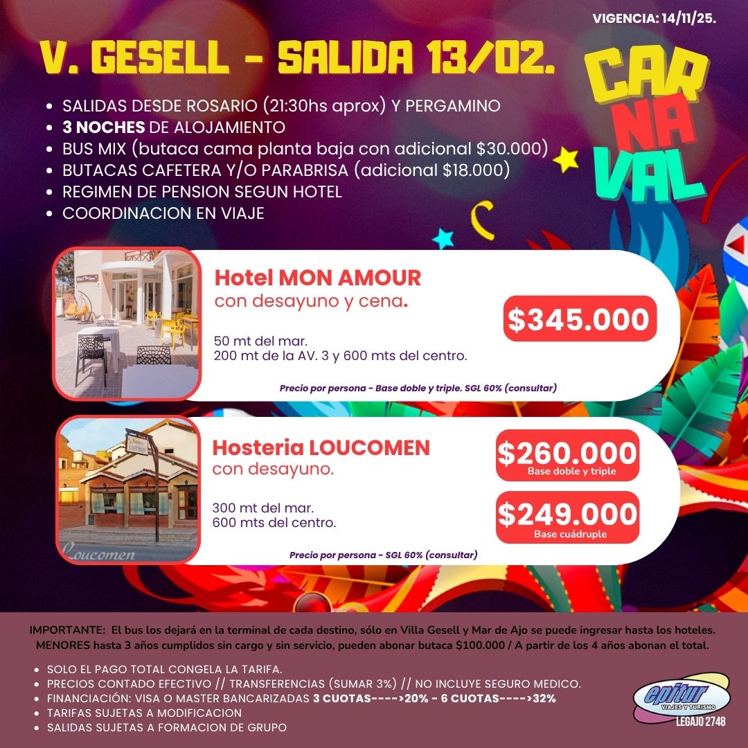 - V. GESELL INCLUYE TRASLADO AL HOTEL.
