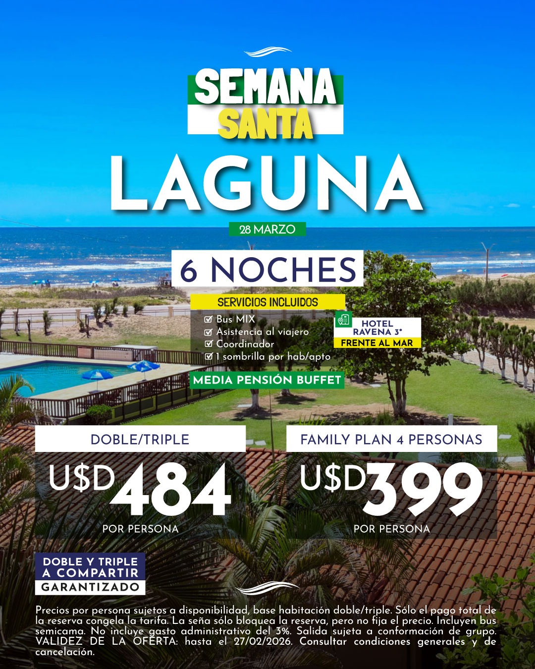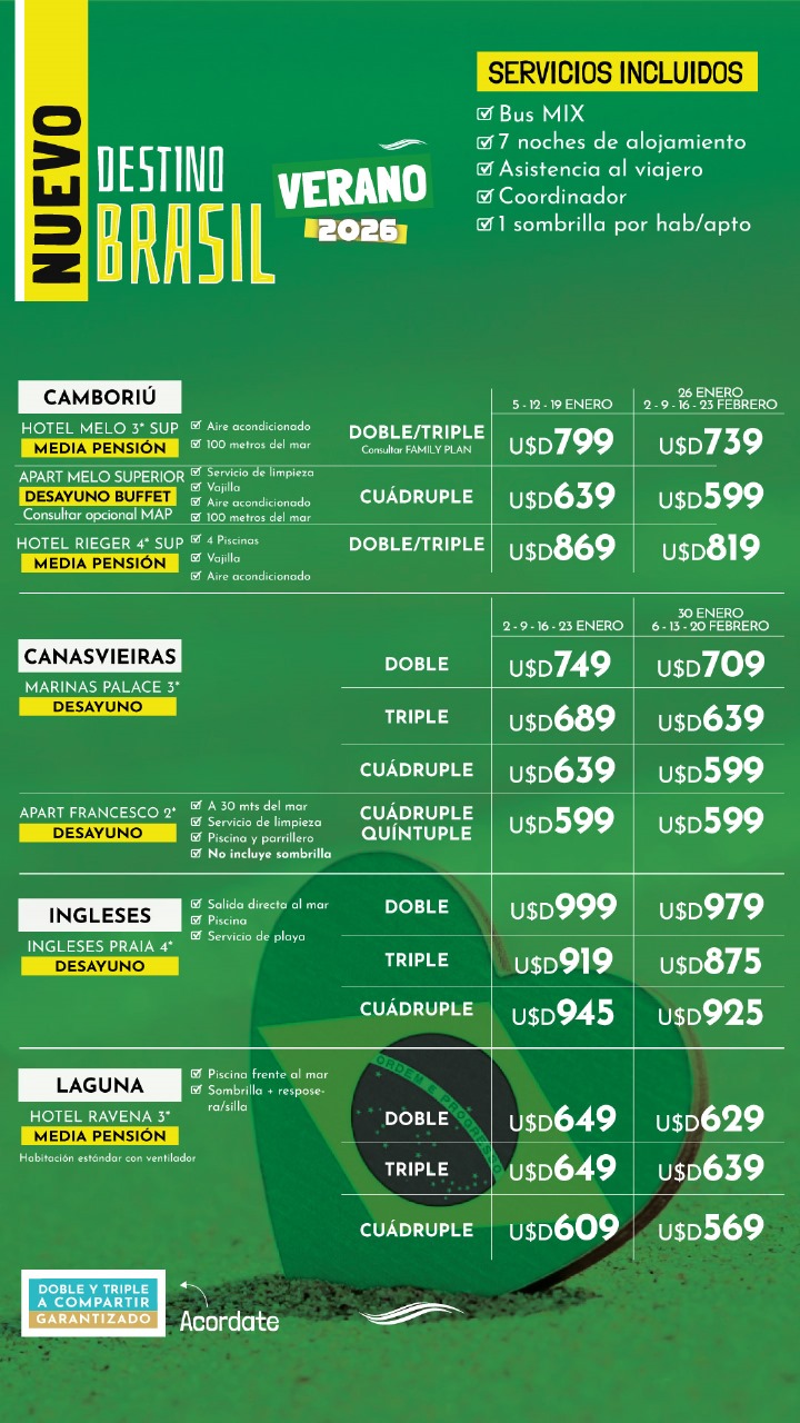 Las tarifas están sujetas a modificación y confirmación al momento de la reserva.