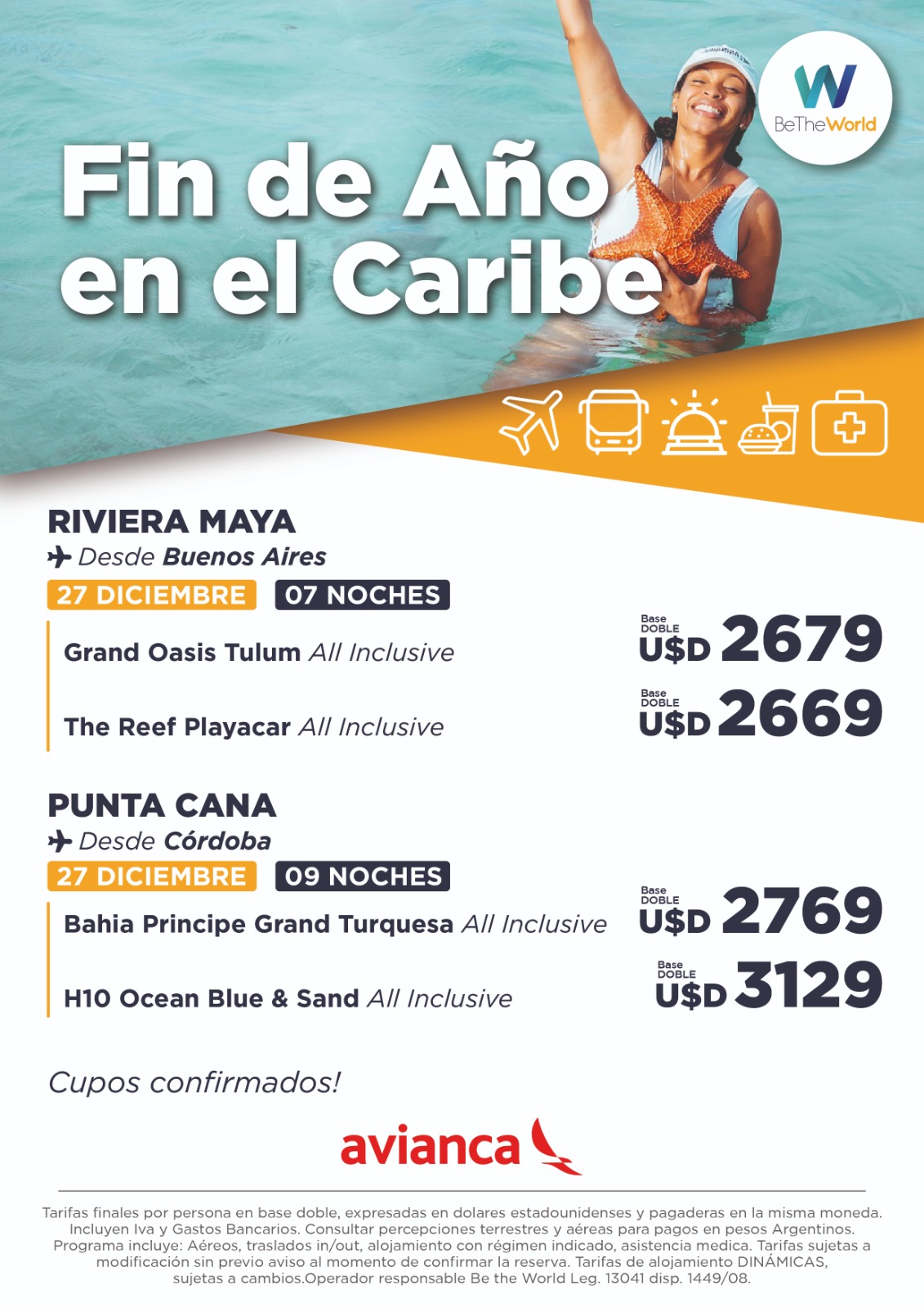 Tarifas en dólares por persona