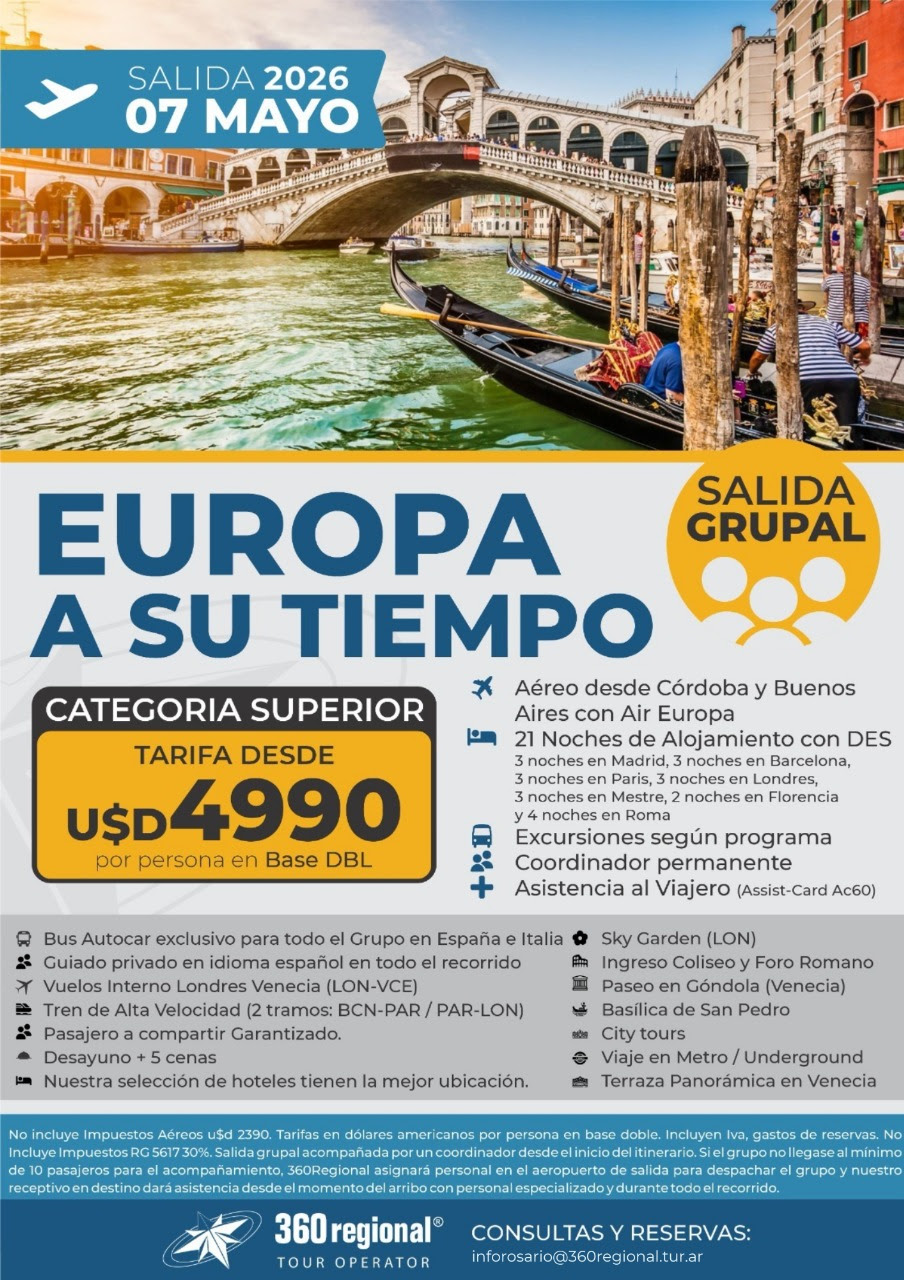 Salidas desde Rosario y Buenos Aires
